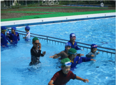 7/16(水)、着衣泳を行いました。着衣時の水難事故を想定して、靴など浮...