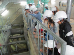 熱心にメモを取り、職員の話をよく聞いて、ダムや浄水場の働きや働く人の様子...