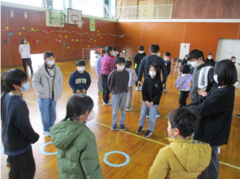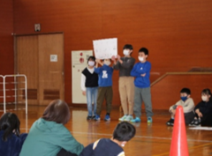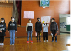 6年生を送る会のゲームの中では、6年生への感謝の気持ちを述べる場面があり...