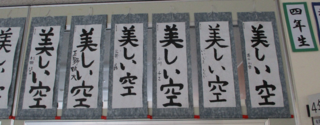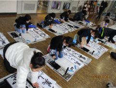 1月9日、13日に行った書初め大会の作品を19日~23日の間、校内書初め...