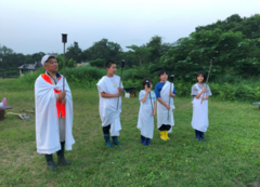 キャンプファイヤーでは、燃え盛る炎を囲んで、歌を歌ったり、グループで準備...